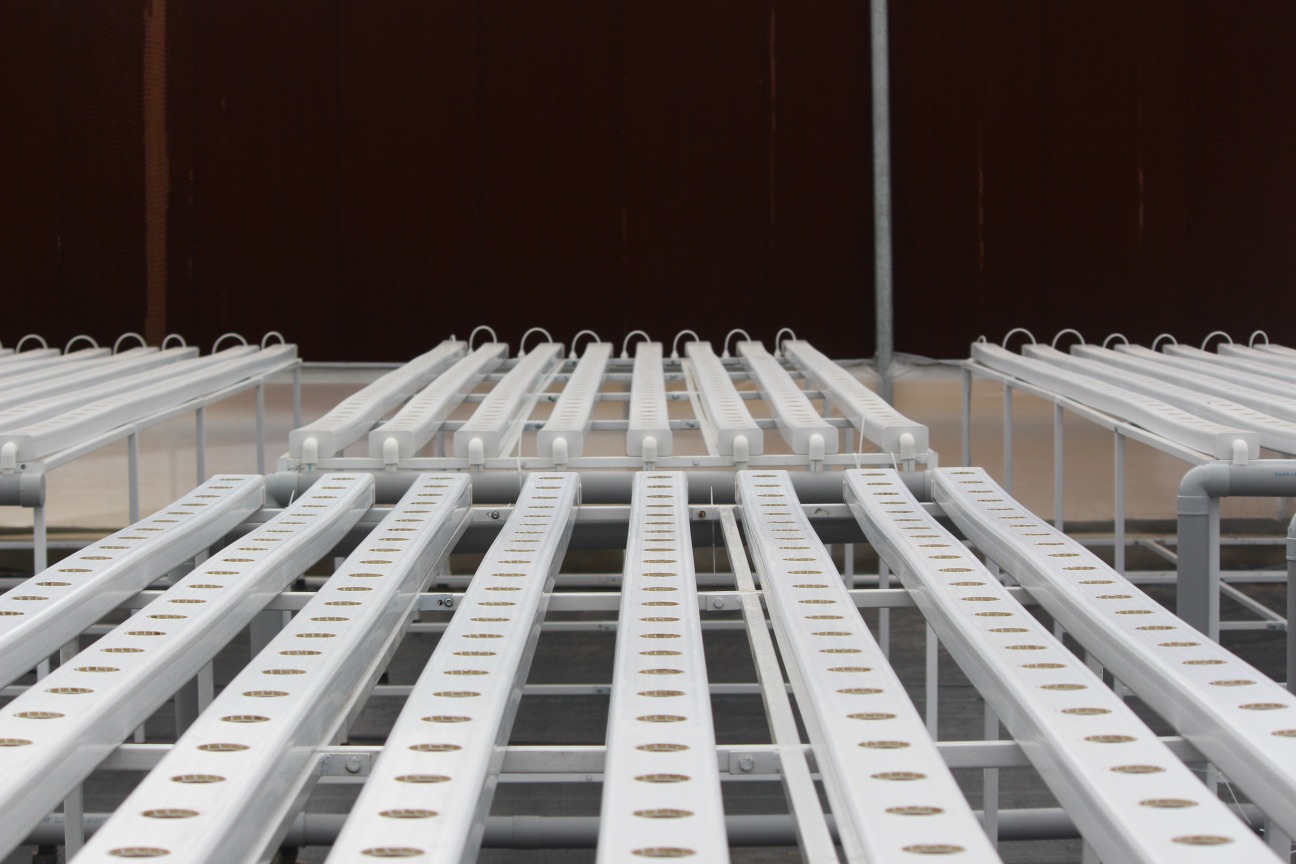 Our main system is called the Nutrient Film Technique (NFT). It uses long, narrow channels where plants like lettuce are placed in a row. These channels have water flowing through them, carrying all the nutrients the plants need. The excess water goes back to a tank, gets mixed again with the right nutrients, and then pumped back to the plants. It's like a continuous loop, making sure the plants always have what they need to grow.