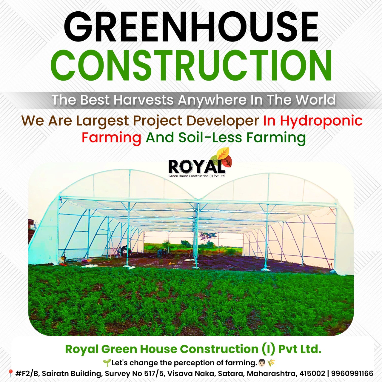 Established in the year 2014, Royal Green House Construction India Private Limited is a trusted name engaged in providing Construction Services for Commercial Farm Setup like Natural Ventilated Poly Houses, Fan & Pad Poly Houses and Shade Houses. Which are commonly used in agriculture industries. Use of latest technology and excellent workmanship make our services ahead of those rendered by our competitors.